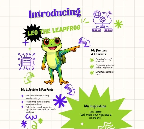 Leapfrog Services, an IT management and cybersecurity company in Atlanta Georgia asked for our social media marketing class to create recommendations that will help increase engagement and click-through rates for their social media channels. Their mascot is a green tree frog, and we decided to bring the mascot to life, highlighting why customers should choose their organization.