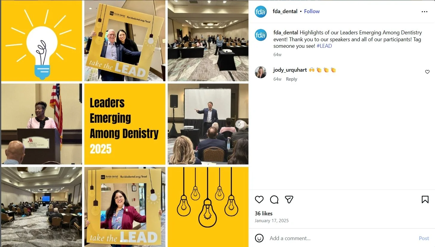 During my time at the Florida Dental Association; I worked as the communications and media coordinator handling all of our social media channels, collaborating with our graphic designer and marketing director. Some post I implemented on those channels were Member Mondays, Trivia Tuesdays, Dental Day in the Capitol and Fun Fact Fridays. Member Mondays highlighted members of the organization, their hard work and advice to professionals entering the field.